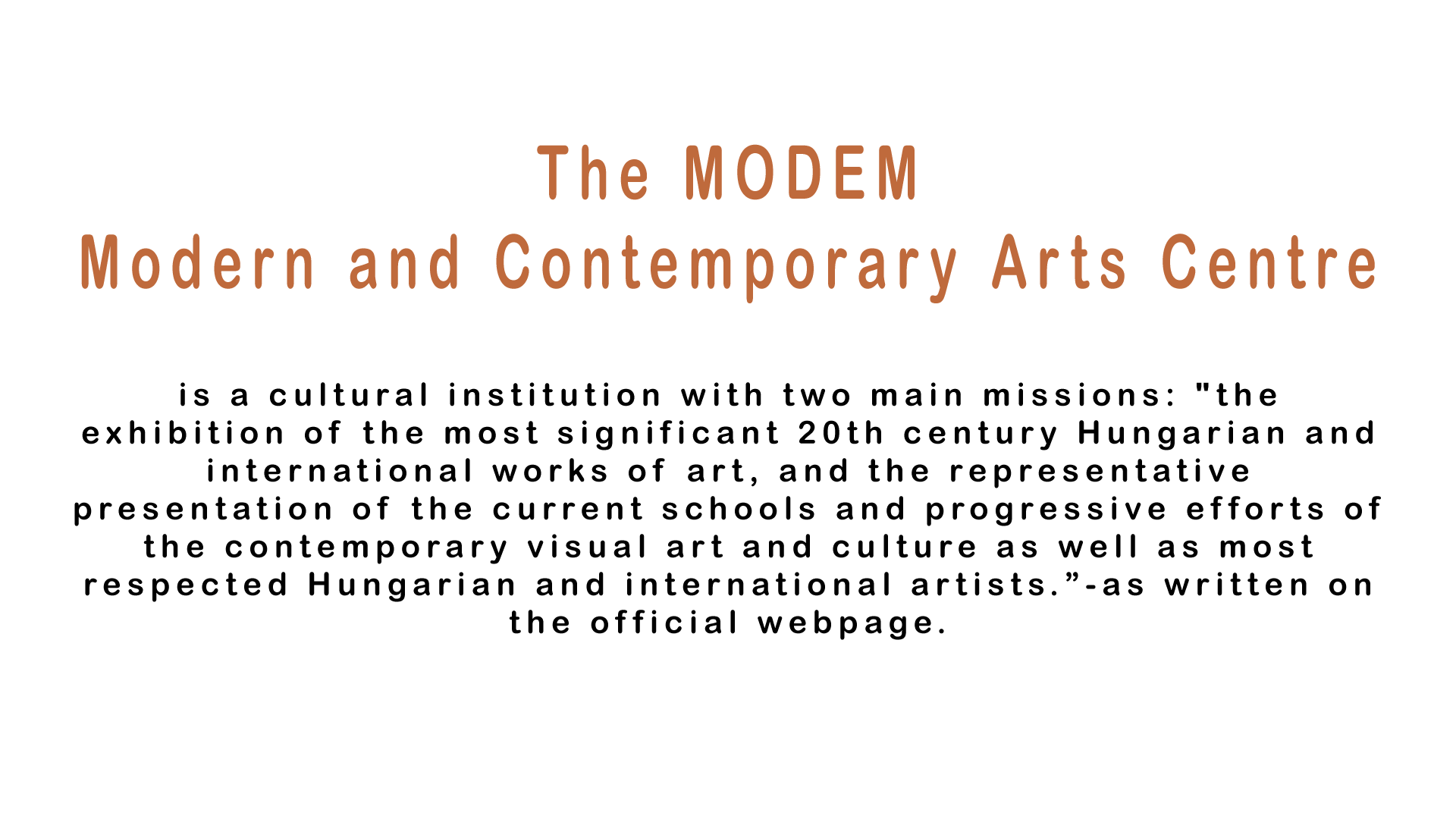 I created this design as a part of my studies. The sources (MODEM logo, pictures of the Artist) were only used for educational purposes. The official page of MODEM is http://www.modemart.hu/en/